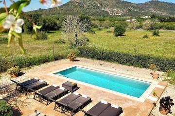 A very spacious house with impressive country views. Ideal for families. Beautiful villa with a swimming pool and panoramic views of the Serra de Tramuntana, located halfway between Campanet and Inca. You can reach the Bay of Pollensa and the Bay of Alcudia in about 20 minutes. The house is built in a very comfortable style. You reach the house through the spacious porch with outdoor furniture. It has a private swimming pool, which can be completely enclosed for maximum safety for children. The house has a living/dining room, where you can find everything you need, such as satellite TV, CD and DVD player, and WiFi. An open-plan kitchen provides access to the back of the house. There is another large terrace with a barbecue area and a bathroom with a shower. The fully equipped kitchen even offers a washing machine and dishwasher. The house has three bedrooms, all with 2 single beds, and 2 bathrooms with shower and toilet. The finca is located about 3 km from the leather city of Inca. There you will find supermarkets, bars and restaurants, and a cultural center. For golf lovers: Aucanada Golf and Golf Pollença are just a 20-minute drive away. IMPORTANT: - All additional payments and online registration procedures are managed via WhatsApp, outside the platform. - All guests over 16 years of age staying in holiday homes must pay the tourist tax. Some portals do not charge it; in th...