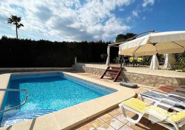 BEAUTIFUL RENTAL VILLA IN CALPE (COSTA BLANCA), WITH PRIVATE POOL and for up to 6 people. LAYOUT: It is distributed on a single floor, which is accessed by stairs. There are three bedrooms (two with double beds and one with single beds) and two bathrooms (one with bathtub and one with shower). There is a fully equipped independent kitchen and a spacious and cosy living-dining room with air conditioning and fireplace. The villa is totally refurbished. EXTERIOR: It has a plot of 1000m2 with lovely gardens and palm trees. A nice pool area and a terrace with modern outdoor furniture from where you can enjoy the afternoon sun with a drink or a swim. There's also a covered barbecue area with a summer kitchen and a large table to have your meals with friends and family, There is parking for your car. LOCATION: Located in a quiet residential area and close to the sea at just 1 km from the magnificent sandy beach of La Fosa, all shops, restaurants and bars. In that municipal area, you will enjoy different sporting activities: climbing, cycling, trekking and all water activities. OTHERS: AIR CONDITIONING IN ALL BEDROOMS. FREE WIFI. PETS NOT ALLOWED....