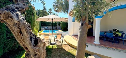 Villa for rent in Denia, situated in the area of Las Marinas, only 3 Km from the centre of Denia and 800m from the sandy beach. The area is very quiet and has all the services close to the property, restaurants, supermarkets, etc. It has a large plot, garden with lawn and private swimming pool. Barbecue next to the pool. The interior consists of 4 double bedrooms, living-dining room, independent kitchen, 2 bathrooms. Covered terrace. Denia has a lot to offer. Situated about 100 km from Valencia and Alicante, from Denia you can discover the Costa Blanca both the sea front and the inland landscapes, orange and almond groves, charming villages, natural parks. You can also go by boat to Ibiza or visit the amusement parks of Benidorm. Denia has about 20 km of coastline with sandy beaches, pebble beaches or rocky coves for sunbathing or diving. You can practice all kinds of water sports, hiking in the natural park of Montgo, tennis, golf, cycling, etc. From Denia there is a boat to Ibiza and boats for trips along the coast. The food in Denia is very good. Its numerous restaurants offer a tasty and healthy Mediterranean gastronomy to satisfy all palates whether in the typical fishermen's quarter, the pedestrian streets around the castle or the beautiful terraces by the sea. It is an ideal place for long walks on the beach, in the harbour or towards the castle and the typical fishermen...