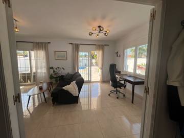 In Pinos de Alhaurín, the Bungalow Villa Aleo solo familias with step-free access and interior offers an excellent view of the mountain. The 37 m² property consists of a living room with a sofa bed for one person, a kitchen, 2 bedrooms and 1 bathroom and can therefore accommodate 5 people. Additional amenities include Wi-Fi with a dedicated workspace for home office, a TV, air conditioning, a washing machine, beach/pool towels as well as children's books and toys. A baby cot is also available. This property offers a private outdoor space with a pool, garden, open terrace, covered terrace, and barbecue facilities. Public transport links are located within walking distance and there is a tennis court within a 15-minute walk. Close to the airport, Autovia access, supermarkets, hiking trails, public transport just 50 meters away, and a beach just 15 minutes by car. Enjoy convenience and adventure at your fingertips! The property is located in a quiet, residential area. Free parking is available on the street. A maximum of 2 pets are allowed. Smoking and celebrating events are not allowed. Parties are not allowed. Please note that there may be governmental water regulations in place at the time of your visit, which may impact the use of the pool, garden watering or limit tap water usage....
