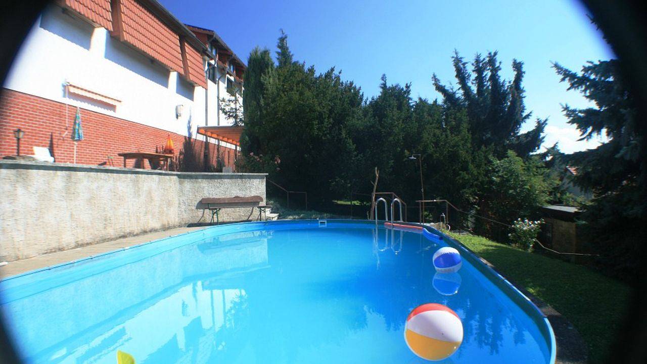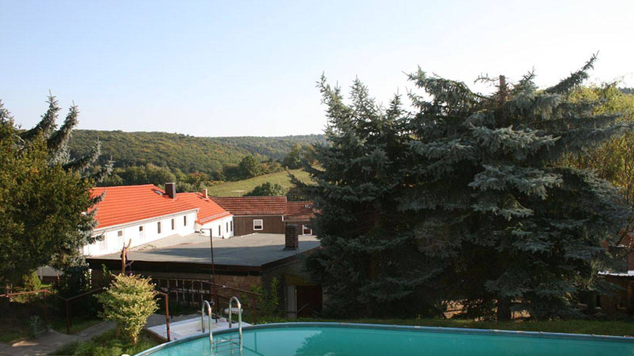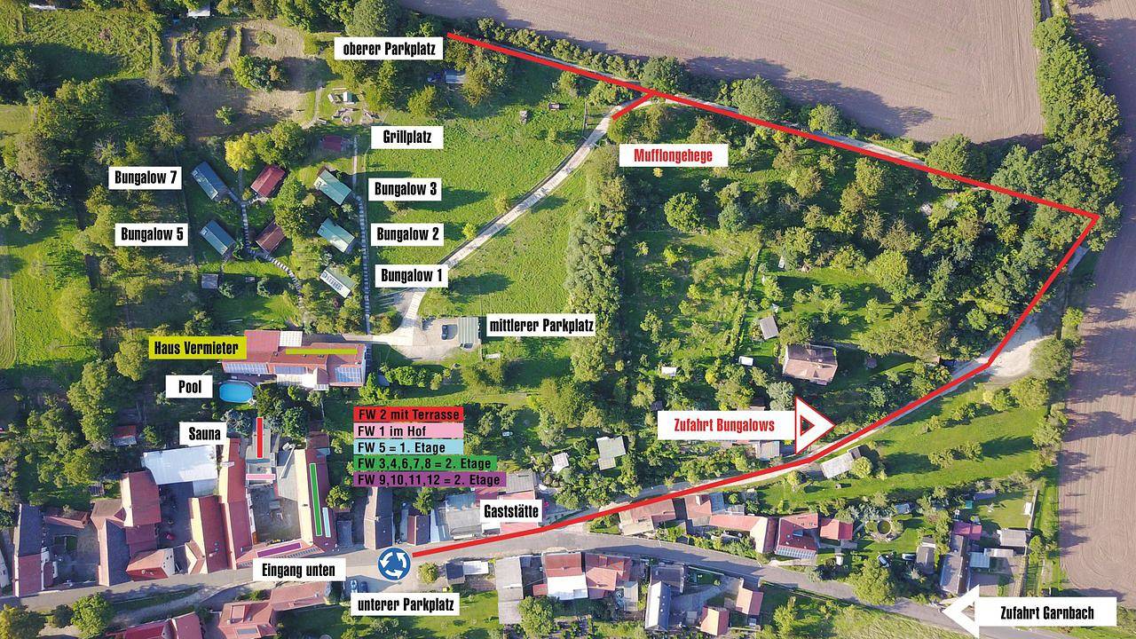 Zur Vermietung stehen auf einer herrlichen Südhanglage 5 Einzelzimmer mit Küche (Studio), 4 Doppelzimmer mit Küche für 2 Personen (Appartement) und 1 Doppelzimmer (Appartement 2) für 4 Personen mit Balkon mit ca. 60 qm sowie 5 Ferienhäuser ca. 45 qm. Grillplatz, Parkplatz, Pool sowie Sauna (auf Anfrage) können genutzt werden. Frühstück auf Anfrage im 100 m entfernten Gasthaus "Zum Fröhlichen Wanderer" möglich. Haustiere sind in den Ferienwohnungen nicht gestattet! Ein Mufflongehege ist angrenzend. Weitere Tiere wie Alpakas und Highland-Rinder gibt es im Ort. Bis nach Bad Frankenhausen sind es ca. 30 km. Die Saunabenutzung ist gegen einen Aufpreis möglich.