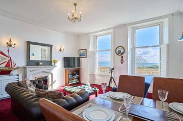 A beautifully renovated first floor apartment in a prime development, overlooking the sea in Weymouth suitable for families to base themselves, to discover the sites of Weymouth and Dorset. Stairs up to the first floor, lead you into the generous siting / dining room with a wonderful bay window looking out to the sea and Weymouth bowling green. The apartment is in a great location for convenient access to Weymouth's main award-winning beach. The acclaimed Sea Life Centre, Adventure Pirate Golf, Sandworld and Lodmoor Country Park are all a few minutes’ stroll away where you will find lots for all ages to do. There is also a restaurant, go carting, children's train, slides and play park. This is the ideal setting for a day out with a picnic. The acclaimed Lulworth Cove and Durdle Door are only a 30-minute drive away as is Monkey World and The Tank Museum, all perfect day trips outside of Weymouth. A leisurely stroll away from the town centre where you will discover lots of narrow streets with quirky local shops as well as the usual high street favourites - ideal for people who want a convenient holiday location but without the hustle and bustle of town life. After a day on the beach or out exploring all that Weymouth has to offer, enjoy an evening of relaxing in this very well-appointed holiday home or perhaps having an evening stroll along the Georgian Esplanade and into the tow...
